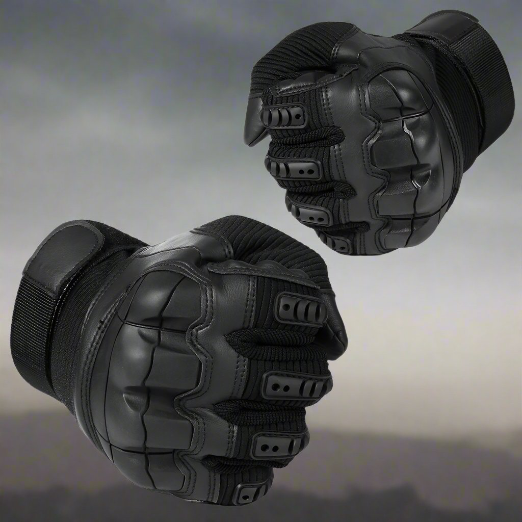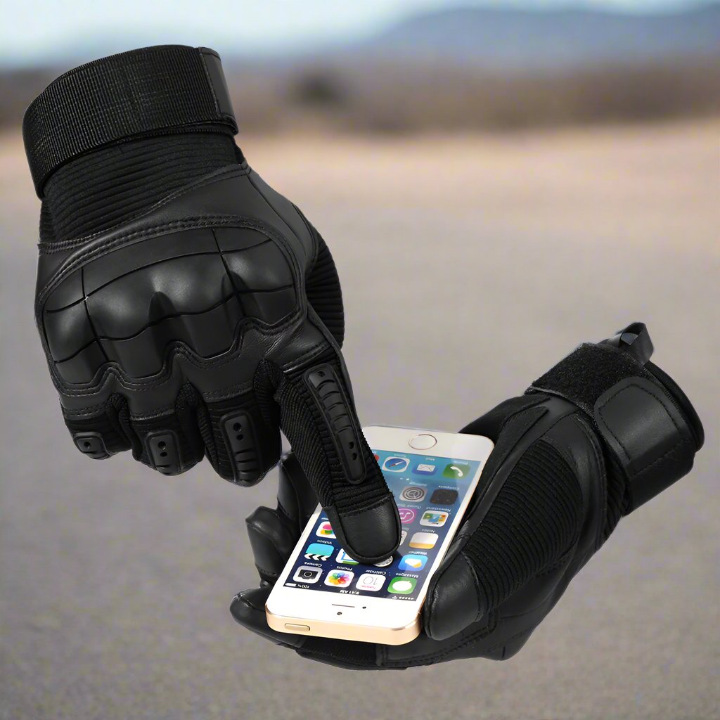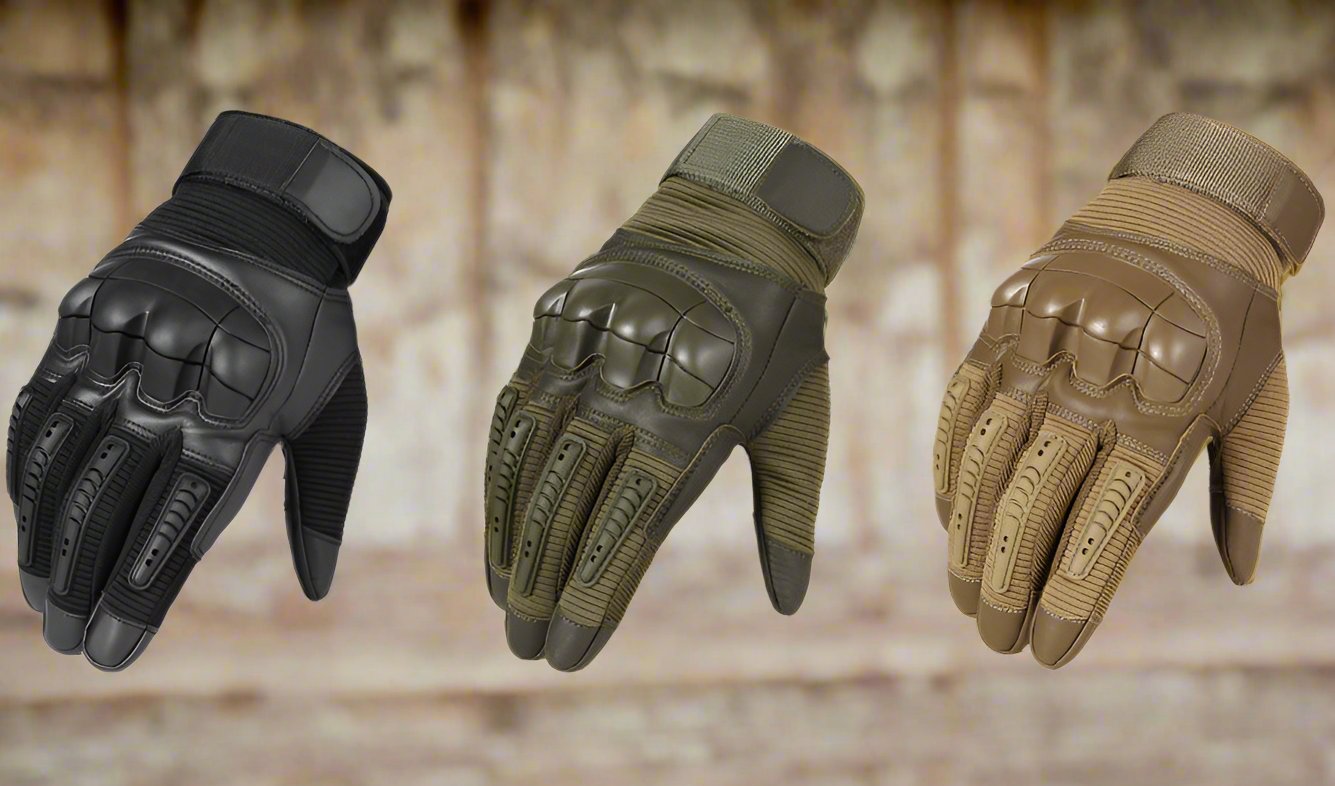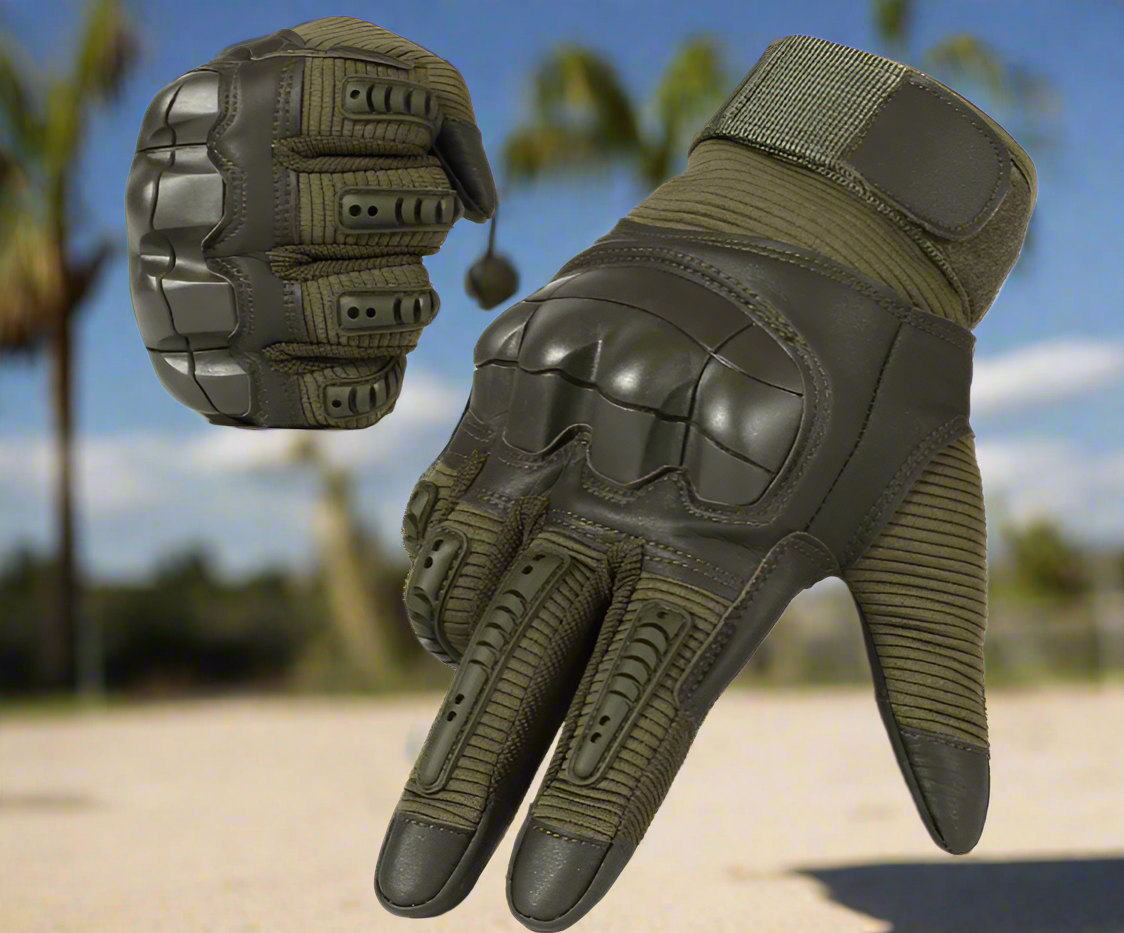High-quality microfiber fabric and buffered rubber knuckle provide durability. Comes in green, brown, or black and sizes S-XL. Includes 1 pair of touch screen tactical gloves. Size measurements vary.
