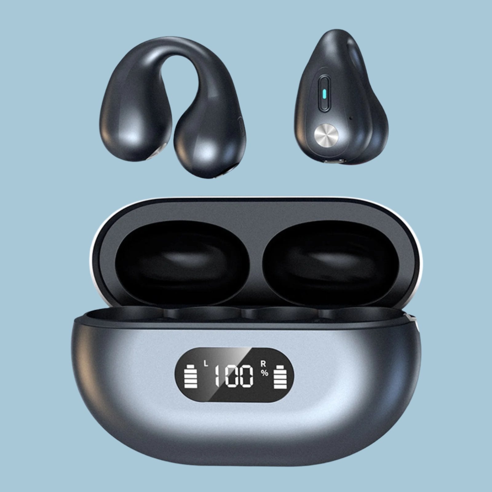5.3 Bluetooth Open Ear Clip Wireless Earbuds with Earhooks & Digital - perfect for outdoor sports, waterproof, lightweight, and with a digital power display for easy monitoring.