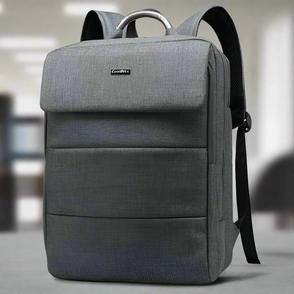 20-35L Grey Business Laptop Backpack for Men. Compact, yet spacious, with multiple compartments and a sleek design. Premium nylon material and aluminum handle for style and durability.