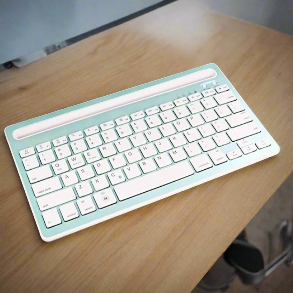 This Bluetooth keyboard lets you easily connect multiple devices and switch between them with just one keyboard. Compatible with iOS, Android, and Windows systems, it's the perfect all-in-one solution. Made with durable ABS plastics, it has a rechargeable battery that lasts up to 12 hours. Comes with a charging cable, built-in stand, and is available in various colors.
